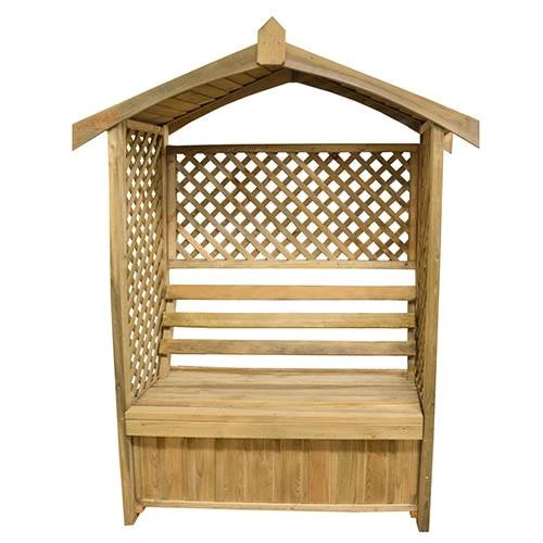 The arbour is manufactured from Pressure Treated timber to give it a 15 year guarantee against rot and fungal decay and has been smooth-planed for a splinter free finish. The solid timber roof offers shelter from unexpected rain showers and the sun.