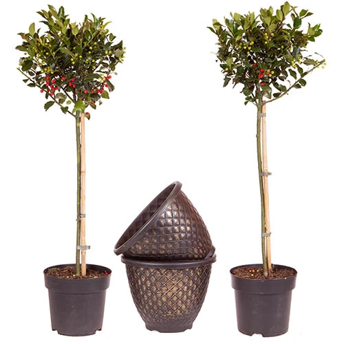 With a slight blush tinge to the beautiful, deep-evergreen, classic holly leaves and with theirĀ rich red berries, they?ll look stunning for many years to come and what?s best is that these holly trees can be enjoyed year-round, not just at Christmas, thanks to their evergreen nature.