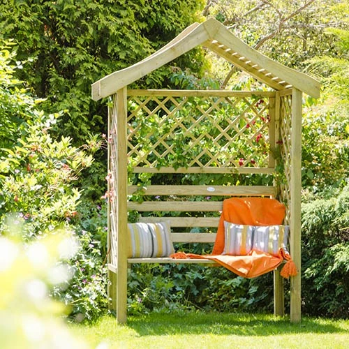 The Parisienne Arbour is a continentally inspired, shaded place to sit and relax in your garden. It will look beautiful with climbing plants covering the diamond lattice panels. The slatted roof allows some light through while also offering some protection against the odd summer shower.