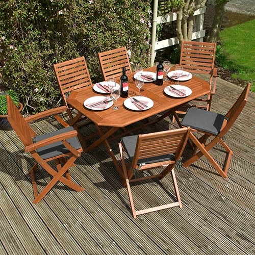 The Plumley six Seater Dining Set represents the perfect garden item; offering style and functionality with value for money. Being made from Eucalyptus Hardwood and coming with a stained finish, the Plumley Dining Set will be sure to bring you many years of enjoyment